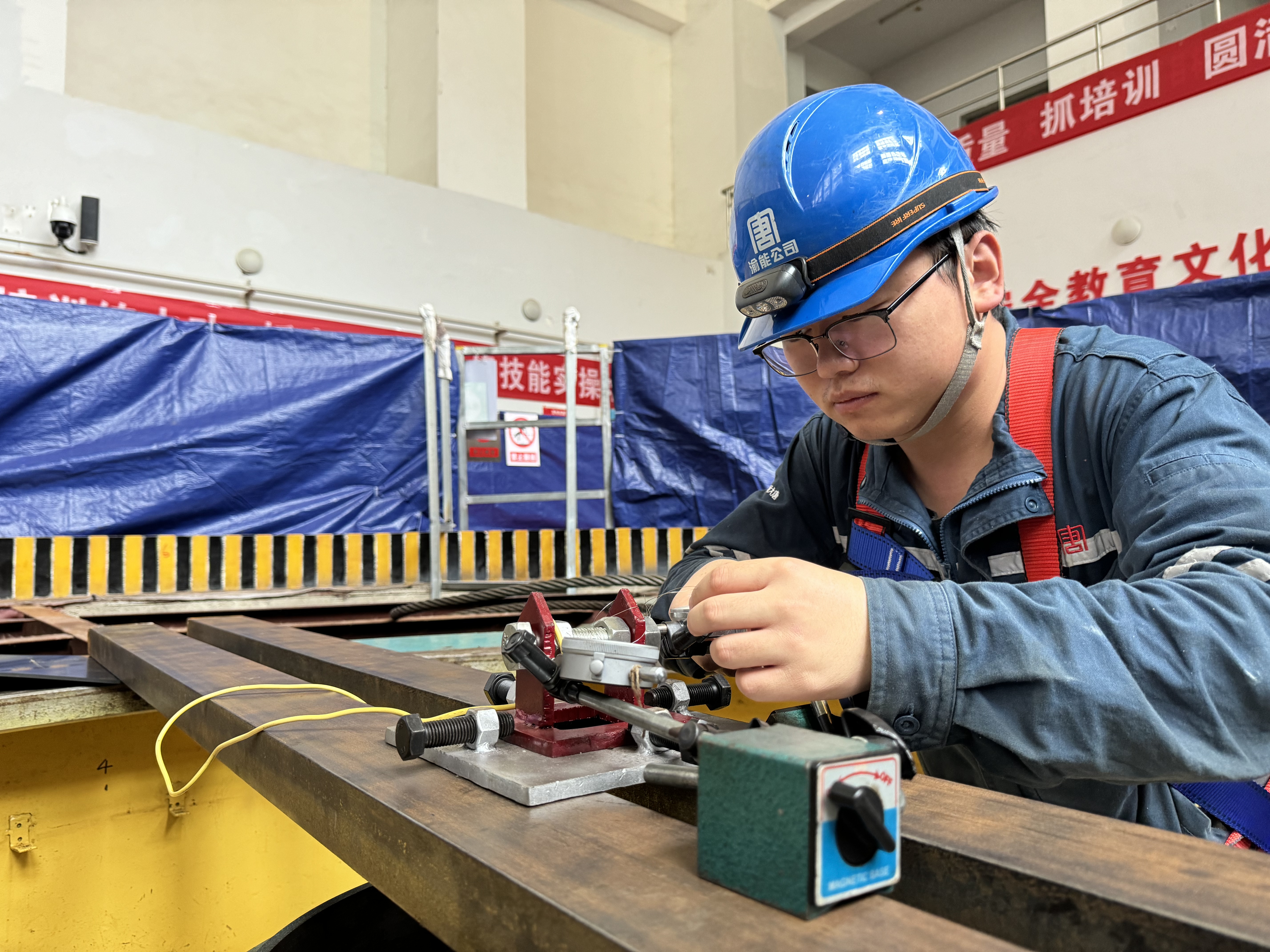 在重庆渝能集团公司马岩洞水电站1号机组A修现场,一场测量机组中心线的特别行动正在悄然进行。