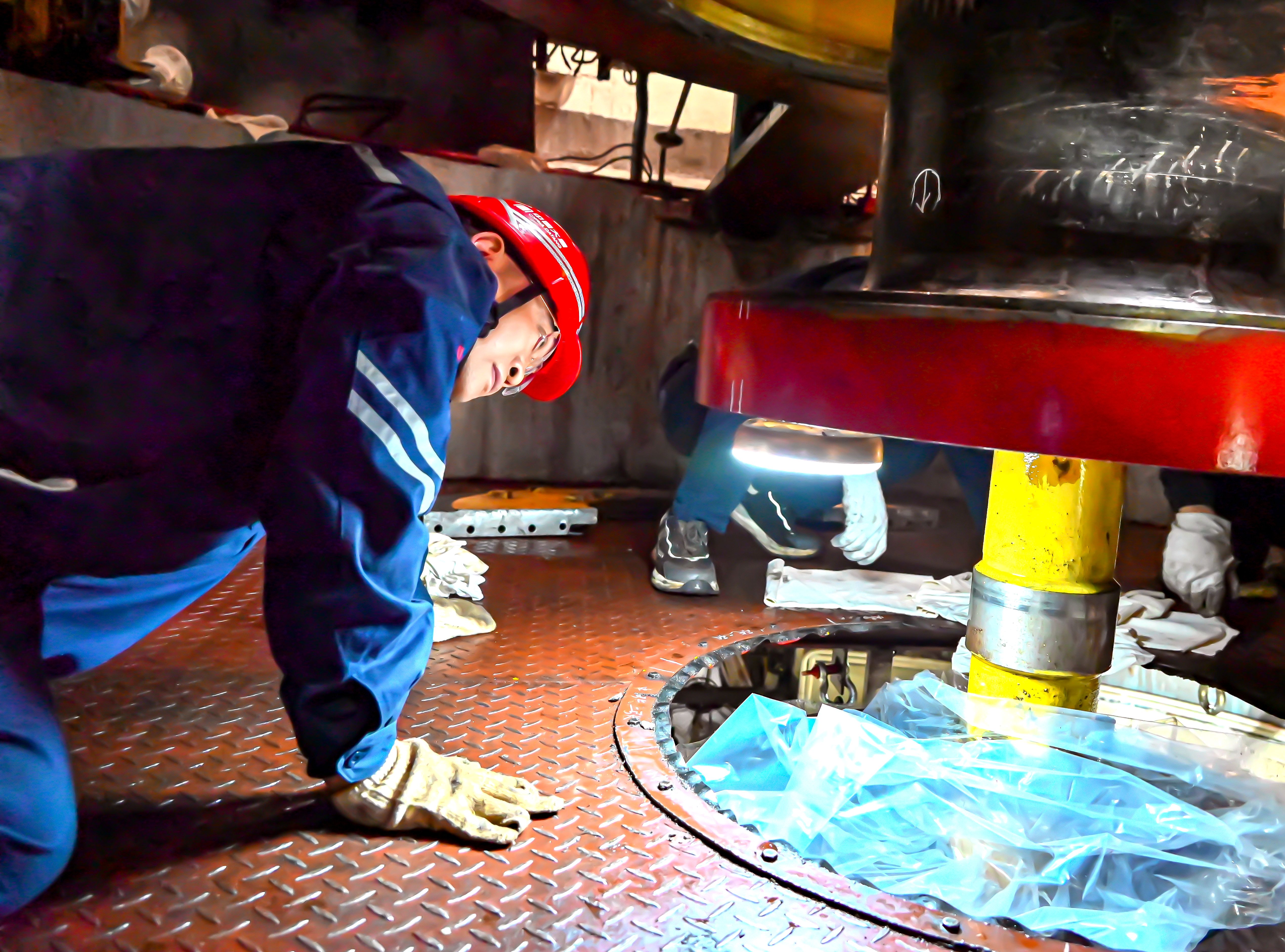 在此后的检修中,刘庆持续驻守一线,牵头协调处理汽蚀修复、冷却器密封渗漏等10余项难题。作为业主带班人,他安全帽下的目光始终沉着专注,脚步穿梭于各个作业面,以专业指挥与高效协作,为A修筑起一道坚实可靠的安全质量防线。
