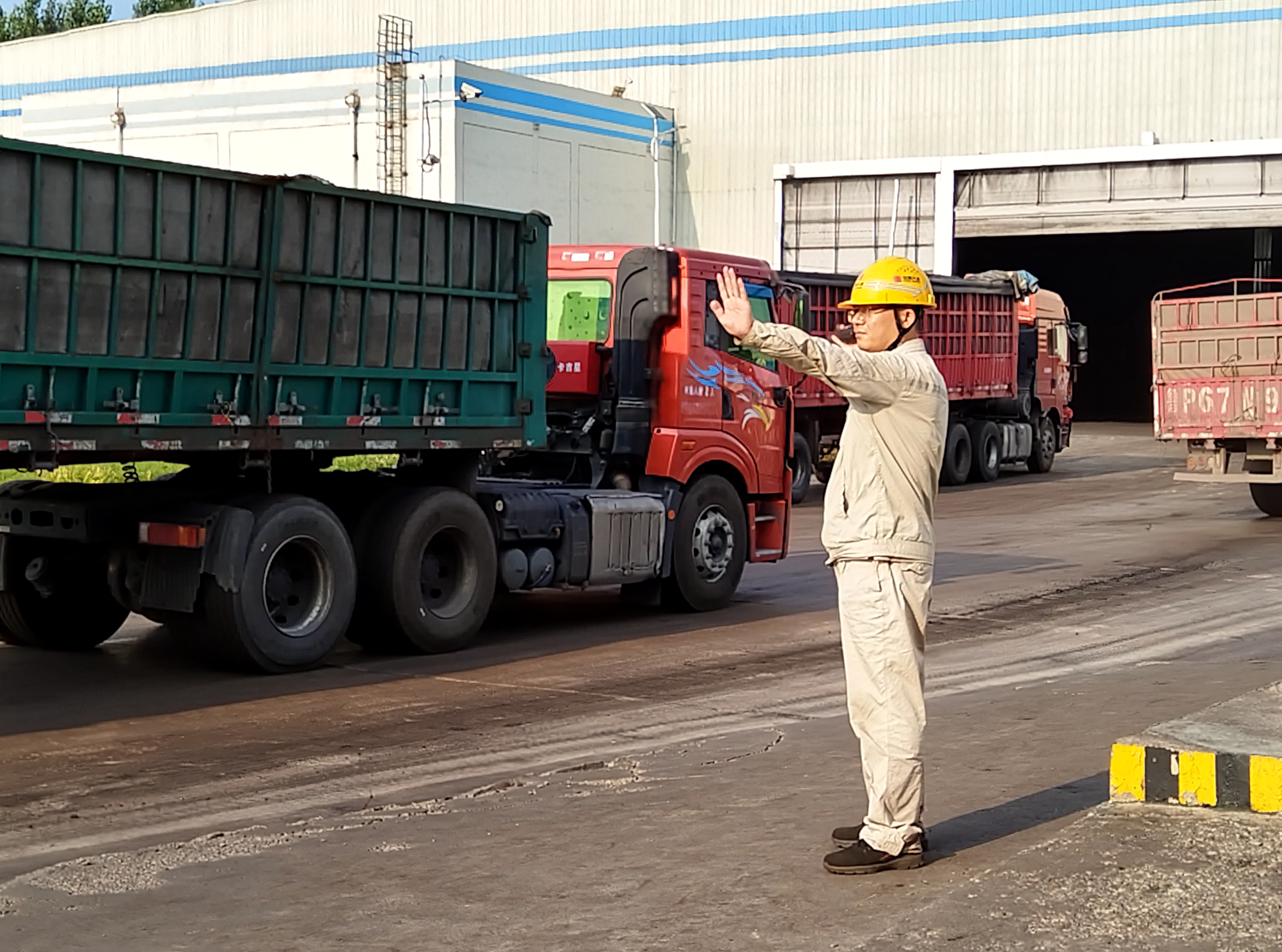 煤场入口处,老王正站在烈日下指引运煤车辆有序进入接卸区。他的反光背心像块湿透的抹布裹在身上,每喊一声“按规定路线行驶,未到卸煤区禁止下车”,喉结都要费力地滚两滚。远处的推煤机正在“哐当”作业,扬起的煤尘被热浪席卷着,在他脸上蒙上一层灰,混着汗水淌出一道道黑痕。