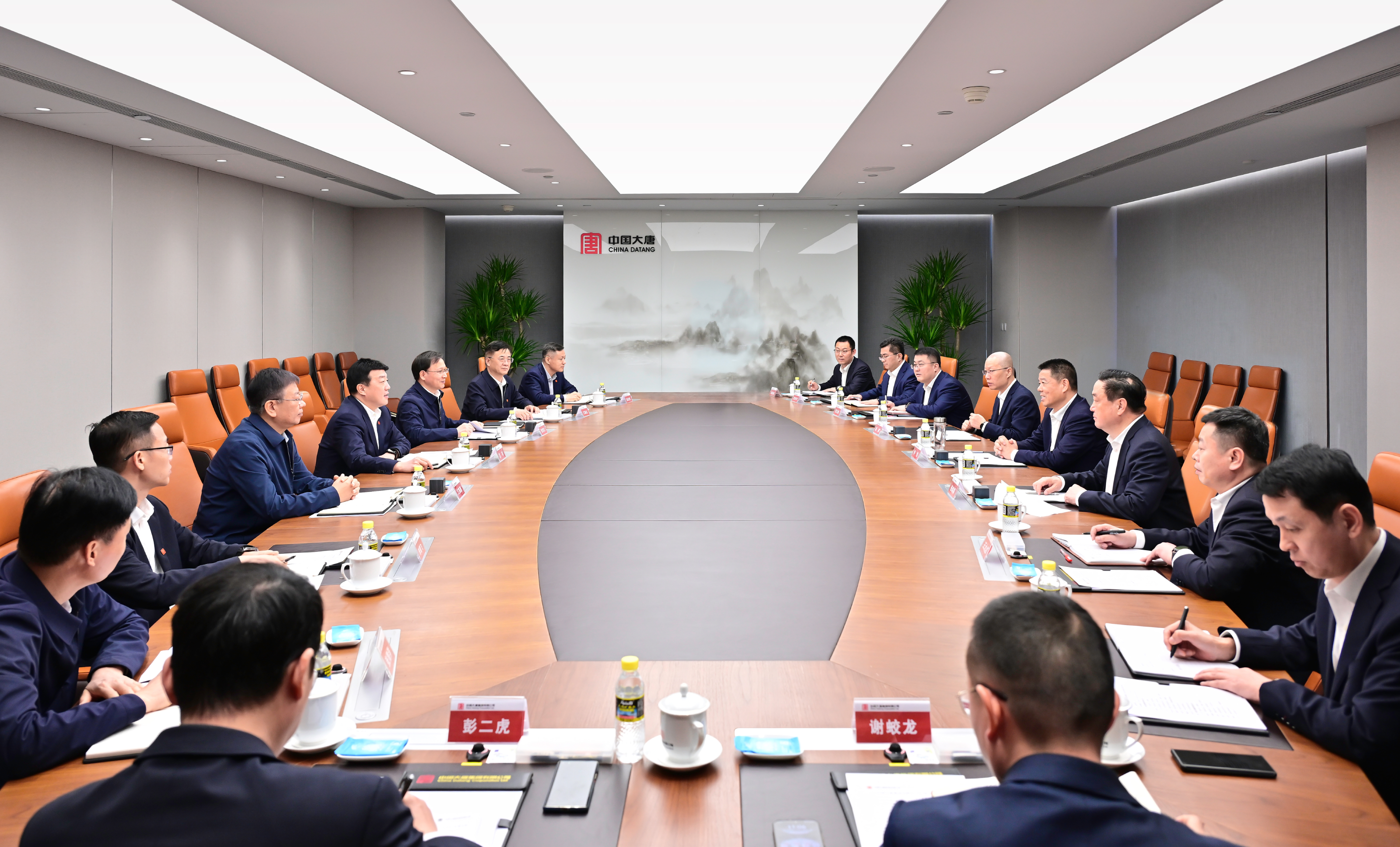 中国大唐党组成员、副总经理王海腾;山东能源集团党委常委、副总经理张若祥,副总经理、总审计师茹刚参加会谈。