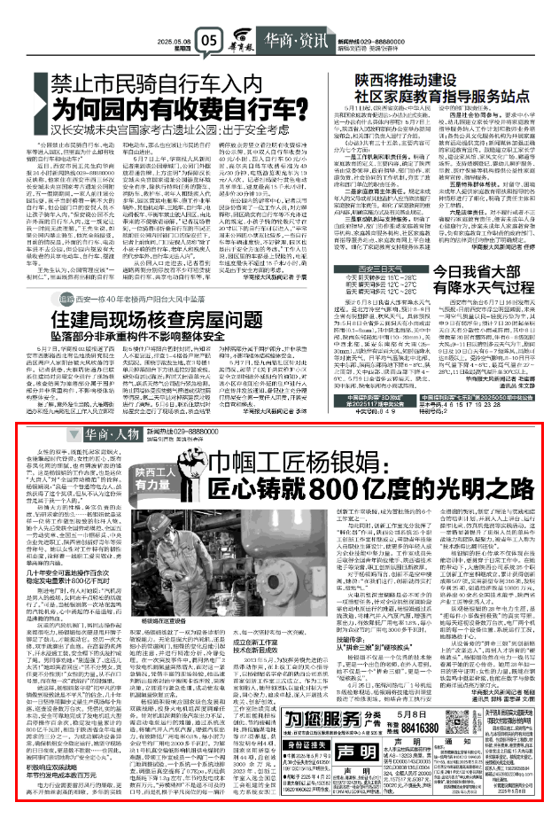 2025-05-0-5华商报 巾帼工匠杨银娟:匠心铸就800亿度的光明之路