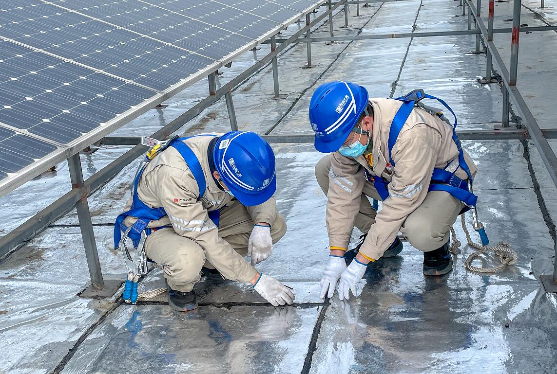 3月,新冠疫情“倒春寒”爆发。彼时,沭阳光伏屋顶防水改造工作已开展一月有余,技改工作进入关键时期,为赶在雨季到来之前完成9个屋顶的防水改造,唐晶、翟凯两人主动申请驻守现场,践行使命担当。