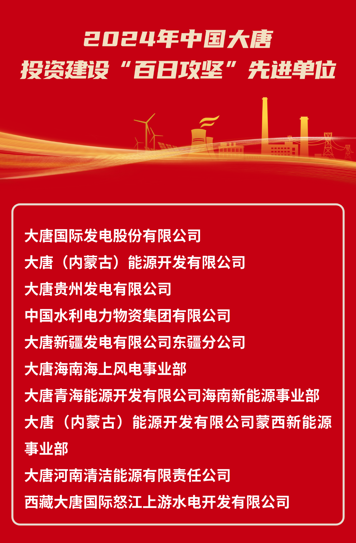 2024年中国大唐集团有限公司投资建设“百日攻坚”先进单位