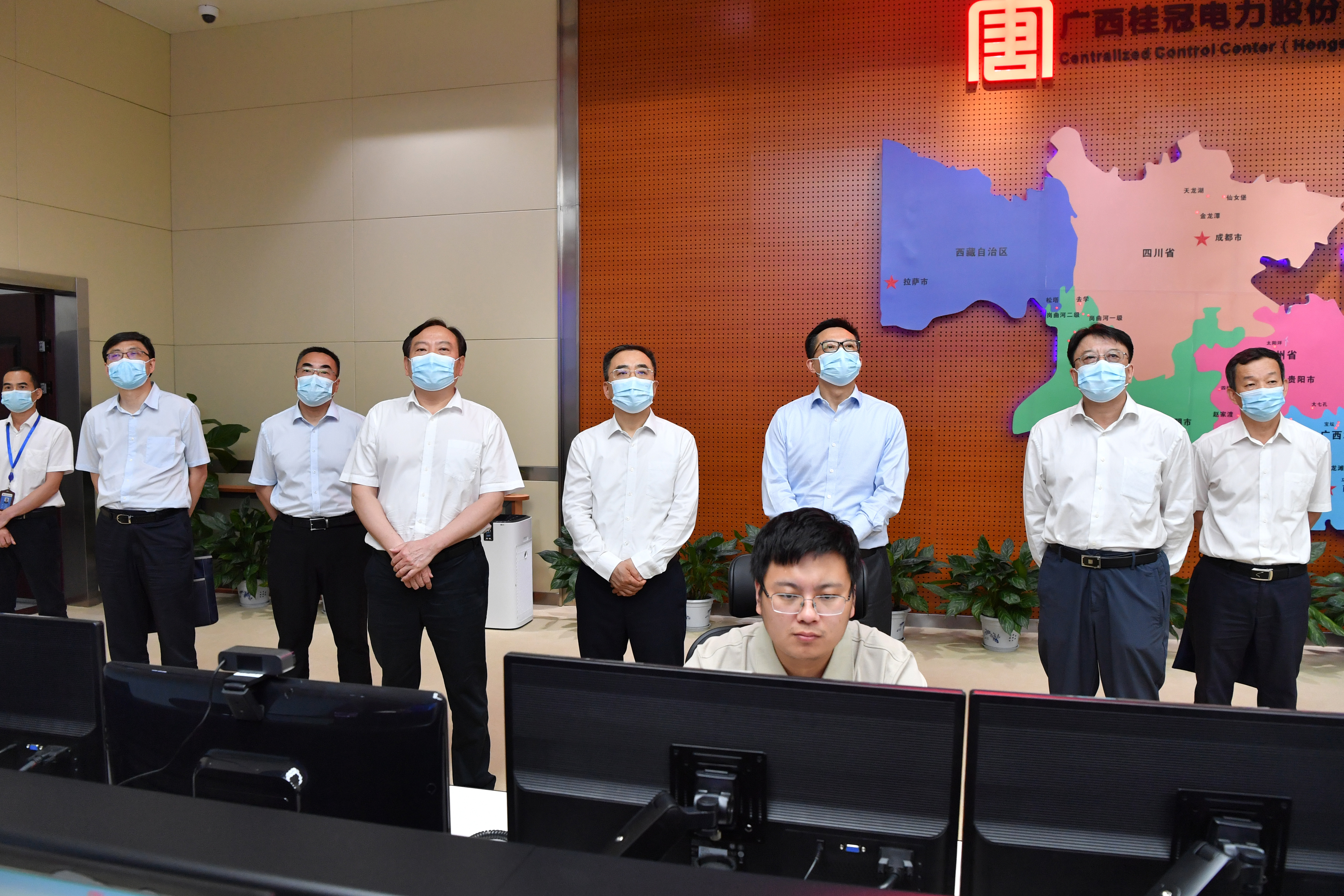 邹磊首先来到集控中心调研,详细了解桂冠公司安全生产及集控中心“数字化建设”“智慧化运营”等情况。在座谈会上,邹磊认真听取桂冠公司深化改革、安全生产及党的建设等工作情况汇报,对桂冠公司今年以来的工作给予肯定,并代表集团公司党组对桂冠公司全体干部职工的辛勤付出表示感谢。