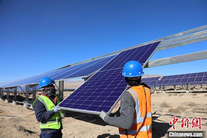 [中国新闻网]青海海拔最高风光基地:76个光伏子阵面积...
