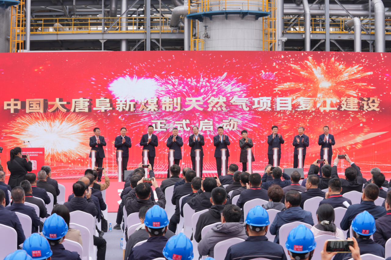 王利波代表辽宁省委、省政府对中国大唐阜新煤制天然气项目复工表示祝贺。他指出,中国大唐与辽宁省、阜新市密切协作,共同破解煤源、市场、手续等难题,最终推动项目重启。项目复工,释放出辽宁“抓项目、促振兴”的强烈信号,标志着阜新产业转型取得重大进展,为阜新“十五五”冲刺千亿GDP提供支撑,更将为全省资源型城市转型树立标杆,推动阜新从传统煤炭依赖向现代煤化工集群跃升,实现阜新管道天然气“从无到有”的历史性突破,形成民生改善、能源结构优化、经济发展的多赢局面。