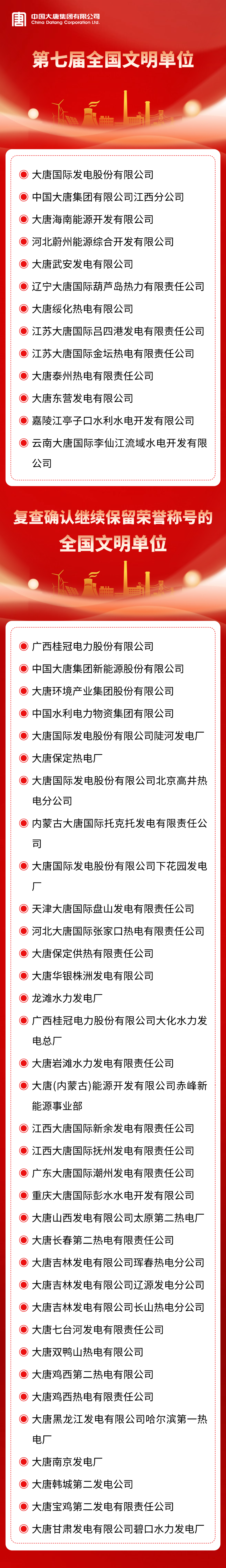 全国文明单位!中国大唐这些单位上榜
