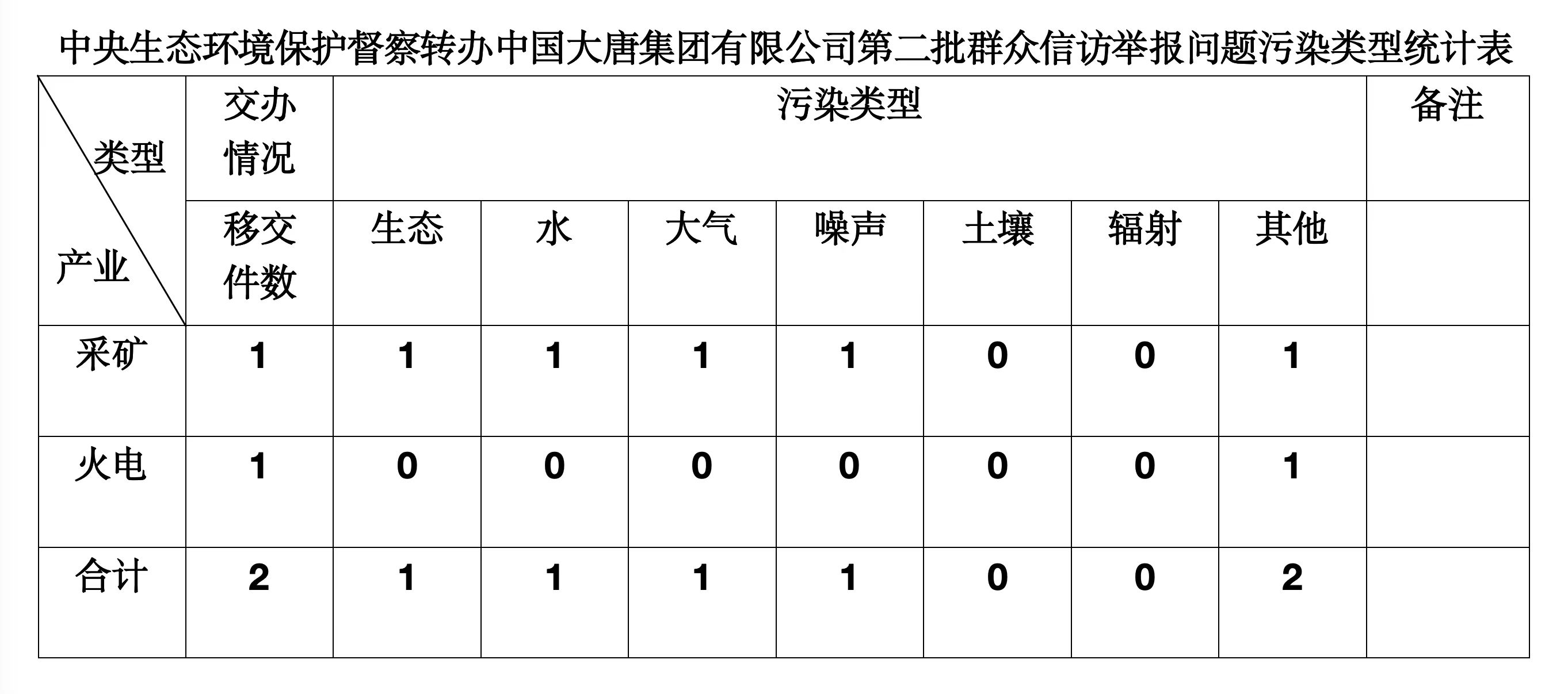 中央第七生态环境保护督察组向中国大唐集团有限公司转办第二批群众信访举报件